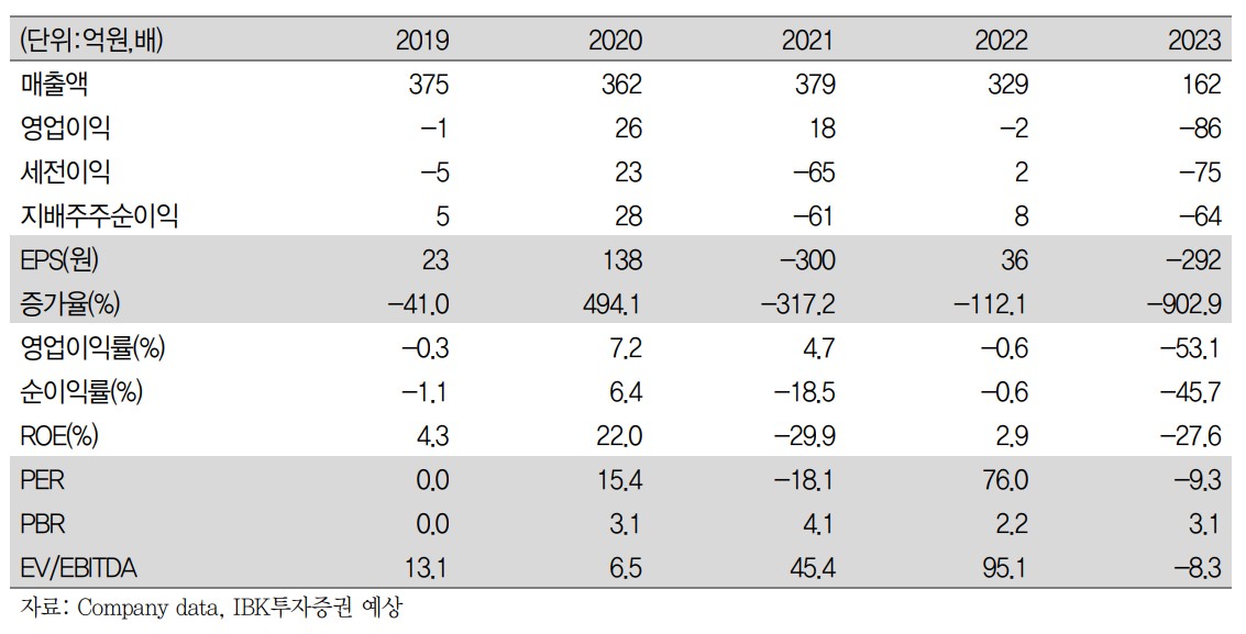 | 매출액 | 375억 | 362억 | 379억 | 329억 | 162억 |