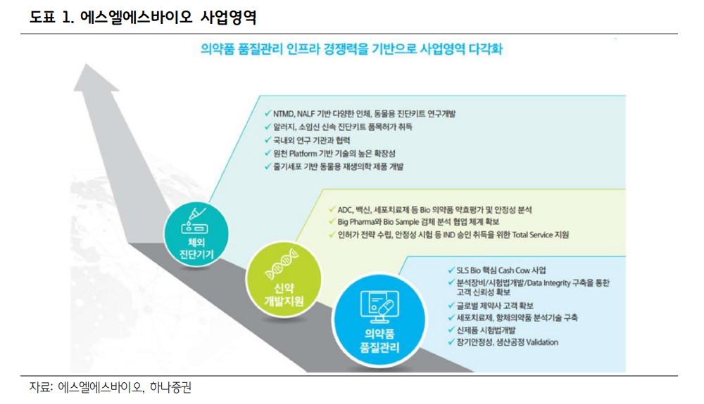 에스엘에스바이오는 의약품 품질검사를 주된 사업으로 하는 업체로, 2023년 10월 23일자로 코스닥 시장에 상장됨. 주요 사업 영역은 1) 의약품 품질 검사, 2) 신약 개발 지원 서비스, 3) 체외 진단 키트 개발임. 별걸 다함 ㅋㅋㅋ