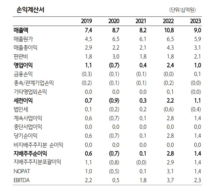 | 영업이익 | 0.4억 | 2.4억 | 1.0억 | 10억 |