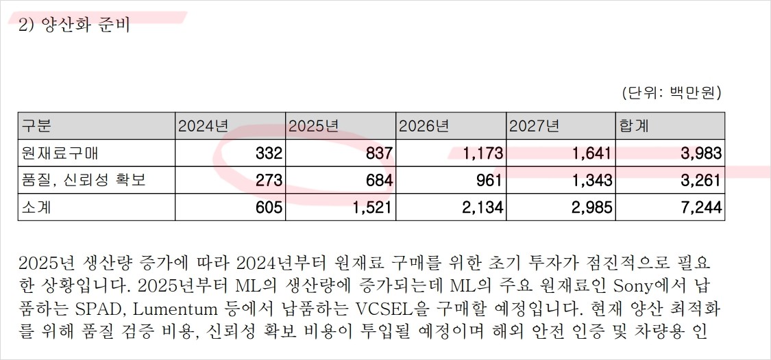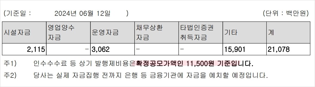 자금 사용 목적은 시설자금, 운영자금과 기타임. 투자설명서에 자금 사용 목적이 상세하게 나와 있으니 보면 좋겠음. 정말로 상세하게 잘 적어놨음. 결국 요점은 양산화 준비임.
