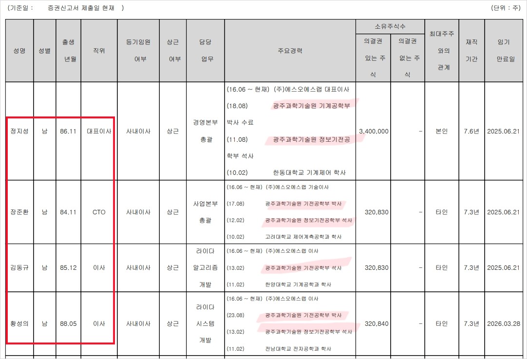 ✅ 에스오에스랩은 생각보다 꽤 건실하고 좋은 기업이라고 생각함. 임원진만 봐도 답이 나옴. 임원진에 대한 내용은 맨 밑에.