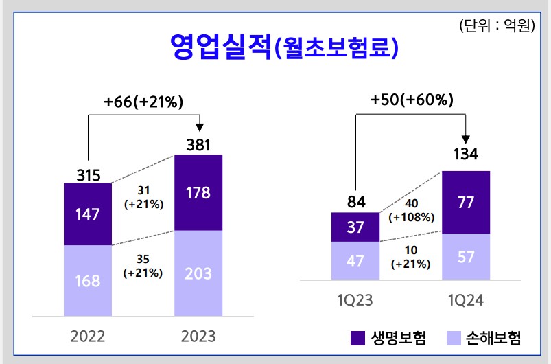 에이플러스에셋은 최근 신계약 판매가 크게 증가하며 실적 개선이 기대되고 있음. 금융당국의 과당경쟁 우려로 인해 신계약 성장이 둔화될 가능성이 있지만, 이는 선지급수수료 감소로 이익 개선에 긍정적인 영향을 미칠 것임. 2024년 1분기 기준으로 경영인정기보험과 통합 건강보험 등 상품 중심의 판매가 이어지고 있음. 또한, 신계약 판매 둔화 시에도 절대적인 판매 규모는 여전히 높은 수준을 유지할 것으로 예상됨.