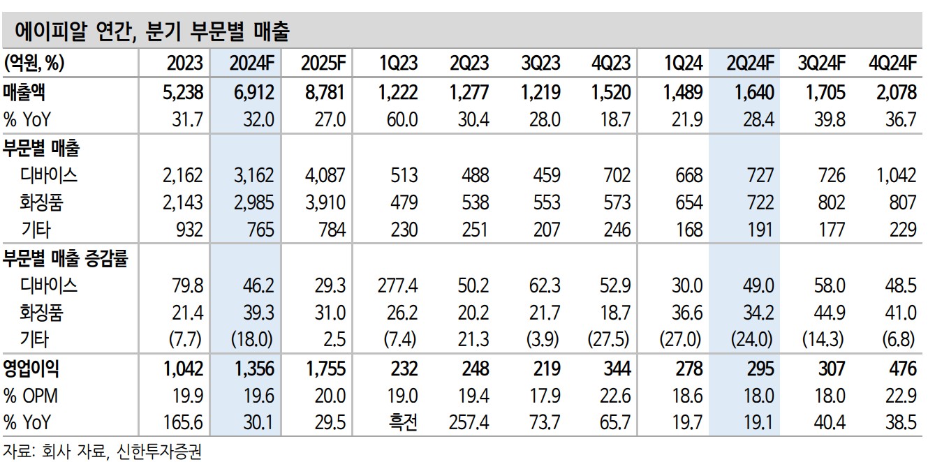 - 2분기 화장품 매출 722억원, 디바이스 매출 727억원 예상