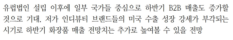 - 유럽 법인 설립 후 B2B 매출 증가 전망