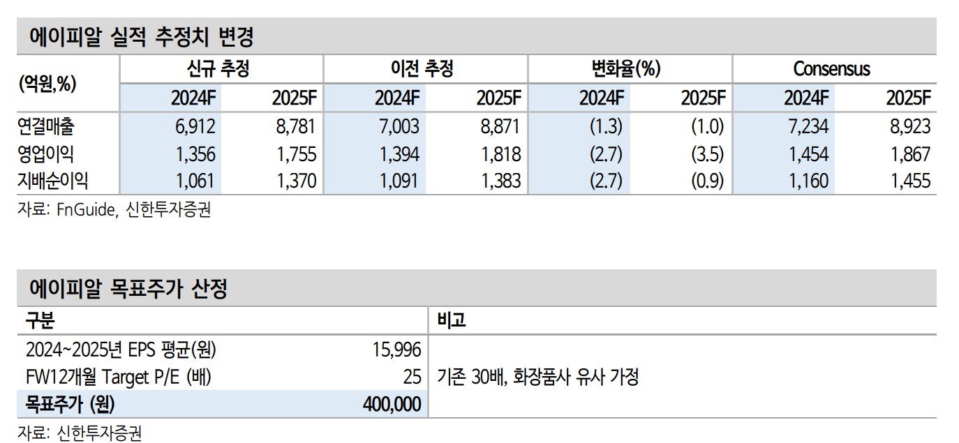 에이피알의 주가는 하반기 실적 개선 기대감과 수출 성장세 유지로 긍정적인 흐름을 이어갈 것으로 예상됨. 특히 유럽과 미국 시장에서의 확장 전략이 주가 상승의 주요 요인이 될 것임. 목표 주가는 400,000원으로 설정함.