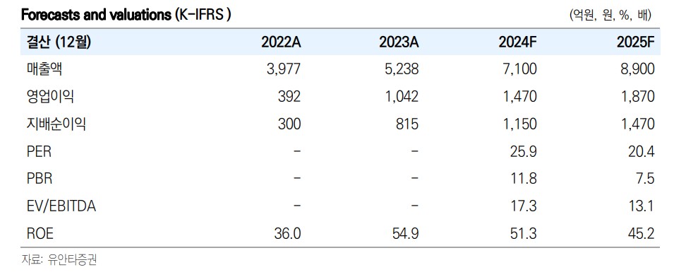 에이피알의 재무 상태는 안정적임. 2024년 매출액은 7,100억 원, 영업이익은 1,470억 원으로 추정되며, 이는 전년 대비 각각 35.5%, 41.1% 증가한 수치임. 부채비율은 2023년 기준 73.4%로 양호하며, 순이익도 흑자로 전환될 것으로 기대됨. 에이피알의 지속적인 수익성 개선 노력은 긍정적인 신호임.
