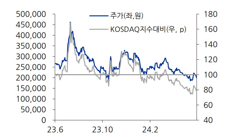 에코프로비엠의 주가는 최근 실적 부진과 정책 후퇴로 인해 하락세를 보이고 있음. 그러나 삼성SDI와의 협력 강화 및 신규 고객 확보를 통해 장기적인 성장 가능성은 여전히 유효함. 특히, 글로벌 전기차 시장의 회복이 예상되며, 이에 따라 주가도 상승할 가능성이 있음.