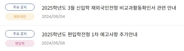 | 국제학생 전형 | 국제 학생 대상 | 외국인 학생 |
