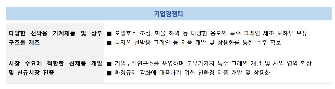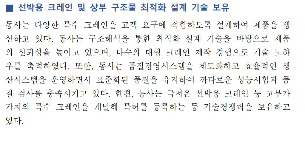 - 기본적 분석 내용: 고부가가치 특수 크레인 제품의 수주 확대