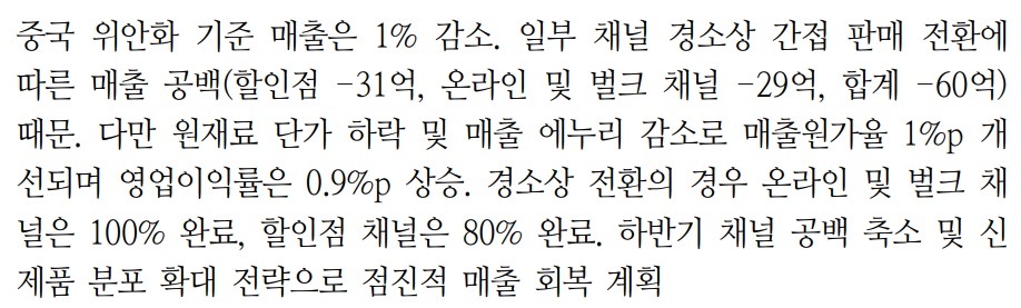 - 중국 시장의 매출 감소