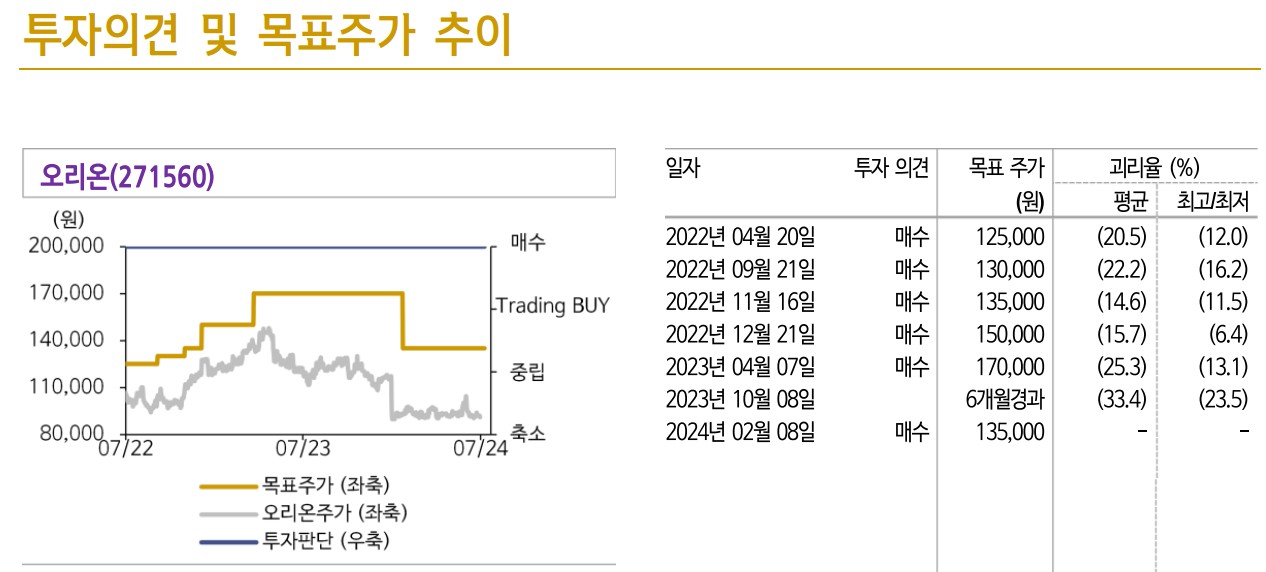 오리온 목표주가