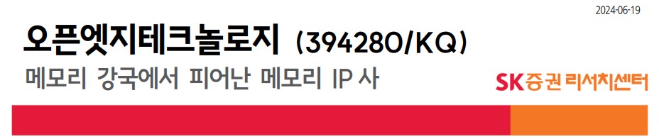 오픈엣지테크놀로지는 최근 메모리 시스템 솔루션 IP와 차량용 엣지 디바이스 특화 NPU에서 성과를 내고 있음. 특히, 글로벌 디램 3사 및 주요 국내외 팹리스와의 협력으로 매출이 증가하고 있음. 2024년에는 CXL 컨트롤러, PIM 전용 메모리 시스템, 칩렛 전용 멀티다이 인터커넥트 IP 공급을 준비 중임. 메모리 고도화에 따른 IP 수요 증가로 성장 기대.