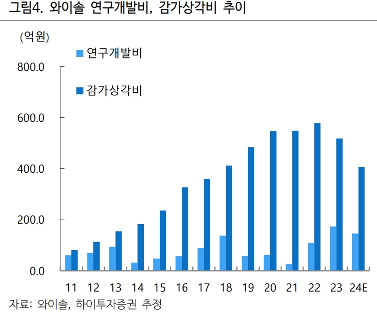와이솔은 국내 유일의 RF 필터 설계 및 양산 능력을 보유한 업체로, 고주파 필터 및 Tx 모듈에 대한 라인업 확장을 통해 장기 성장의 초석을 마련하고 있음. 비용 부담의 Peak out과 신사업 성과가 가시화되고 있는 상황. 최근 5년간의 대규모 Capex와 연구개발비 집행이 실적의 발목을 잡았으나, 감가상각비 부담이 Peak-out 하였고, 핵심 원재료의 내재화에도 성공하여, 이제는 준비해온 사업들이 결실을 맺기 시작하고 있음.