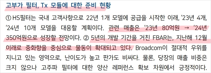 - HS필터와 FBAR의 매출 성장 전망