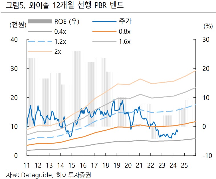 와이솔의 주가는 최근 신사업 성과가 가시화되며 점진적인 상승세를 보일 것으로 예상됨. 현재 주가는 12개월 Fwd PER 9.6배로 밸류에이션 부담이 낮아져 있음. 비용 부담의 Peak out과 신사업 성과 가시화로 인해 주가 상승 가능성이 높음.