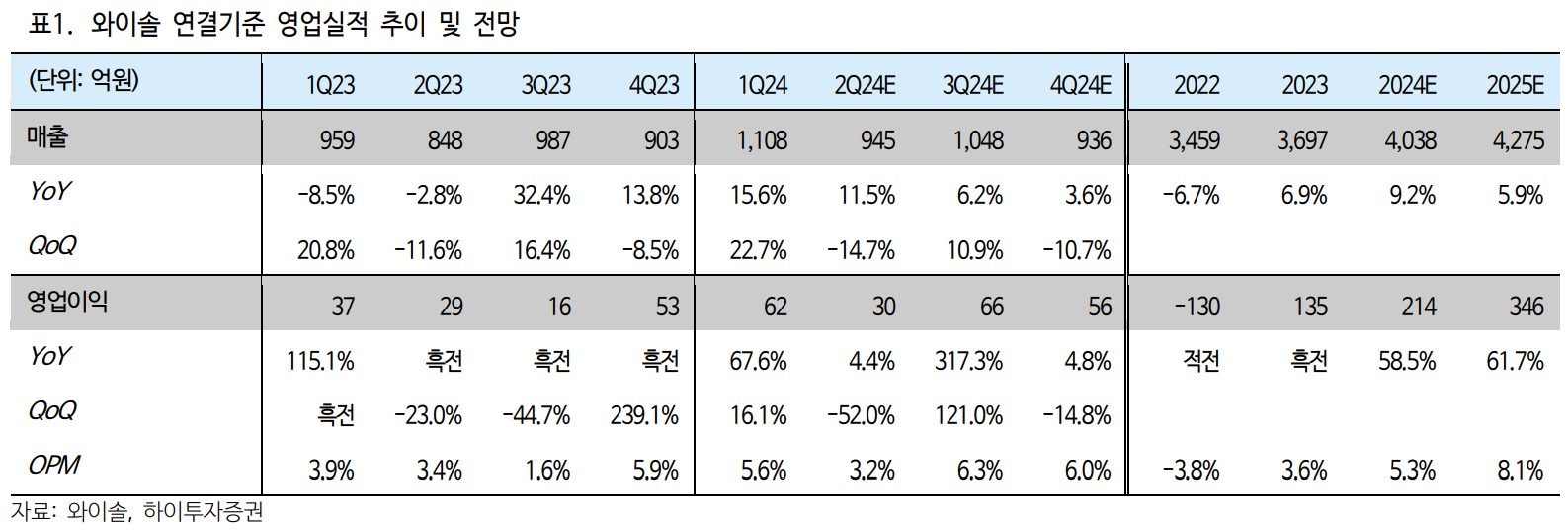 와이솔은 RF 필터 및 Tx 모듈 시장에서 경쟁력을 갖추고 있으며, 신사업 성과가 가시화되며 매출과 영업이익이 꾸준히 증가할 것으로 예상됨. 투자자들은 이러한 종합적인 분석을 바탕으로 와이솔에 대한 투자를 고려할 수 있음.