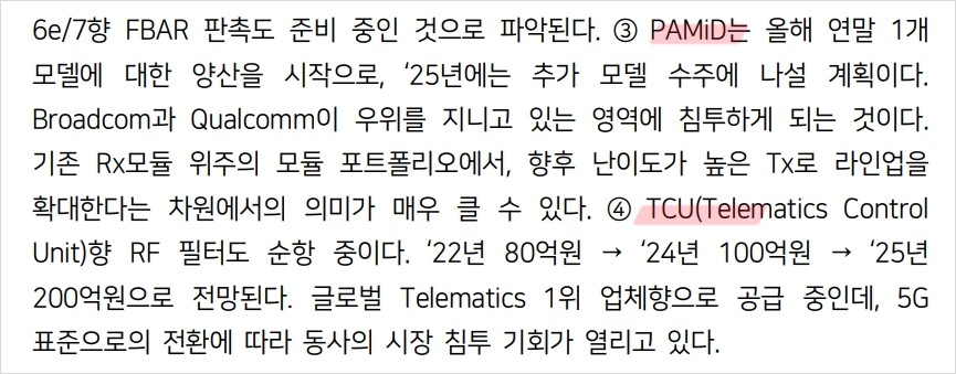 - 기술적 분석: 고주파 필터와 Tx 모듈의 성장 가능성