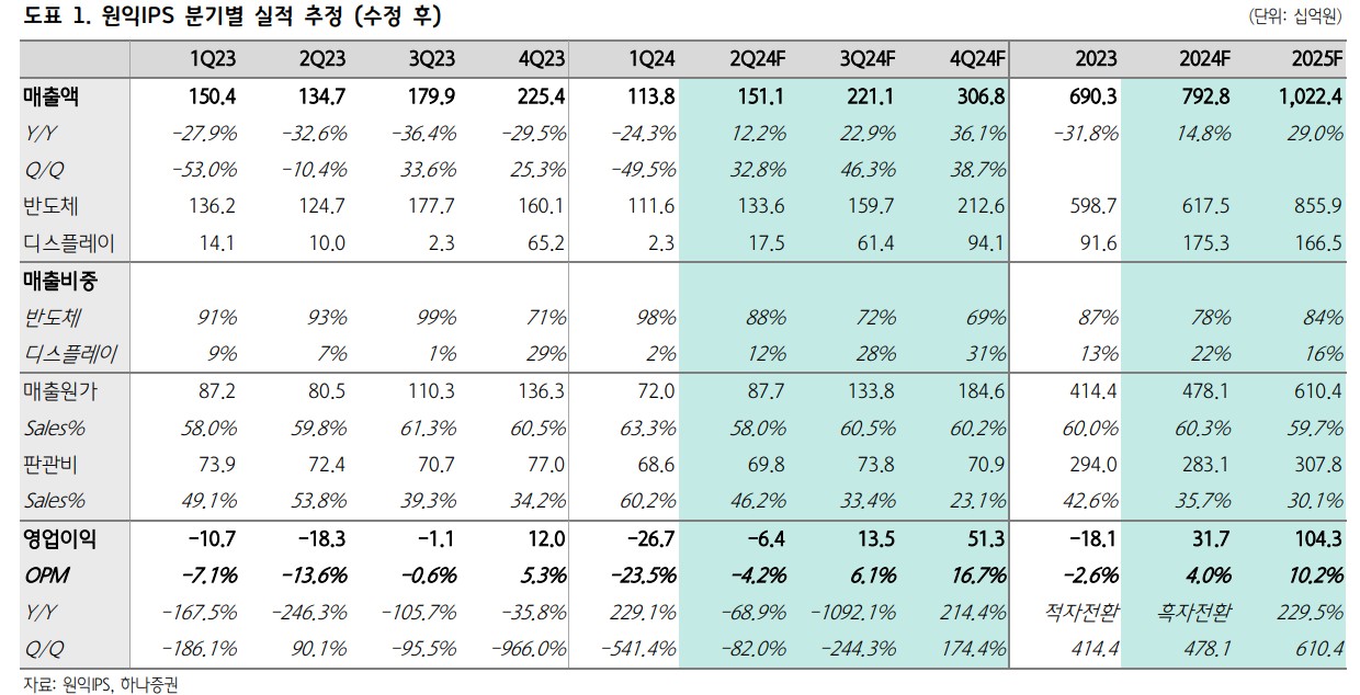 원익IPS는 반도체 및 디스플레이 매출 증가가 기대되며, 주요 고객사의 DRAM 투자 확대가 실적에 긍정적 영향을 줄 전망임. 투자 의견은 "매수"를 유지함.