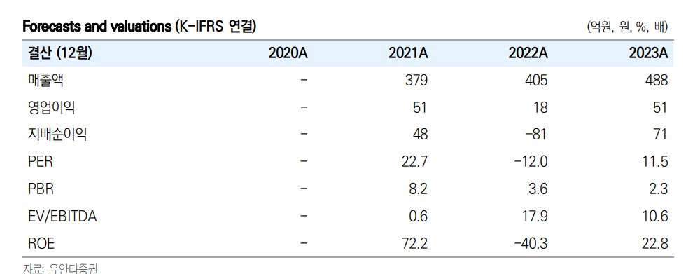 | 매출액 | 379억 | 405억 | 488억 | 123억 |
