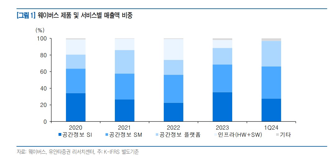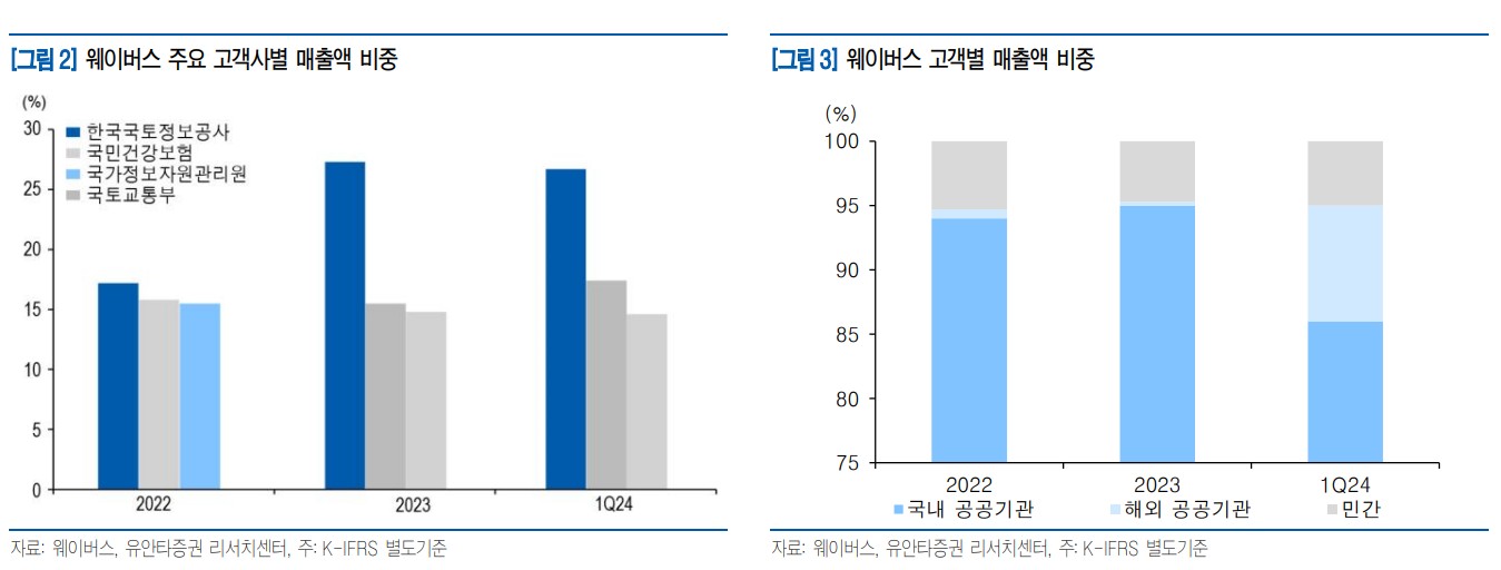웨이버스는 공간정보 통합 솔루션을 제공하는 기업으로, 공공기관을 주요 고객사로 두고 있음. 2023년 매출액은 488억원, 영업이익은 51억원을 기록했으며, 전사 영업이익률은 10.4%로 안정적인 수익성을 보임. 특히, 공공기관과의 장기 계약을 통해 꾸준한 유지보수용역 매출을 창출하고 있음.
