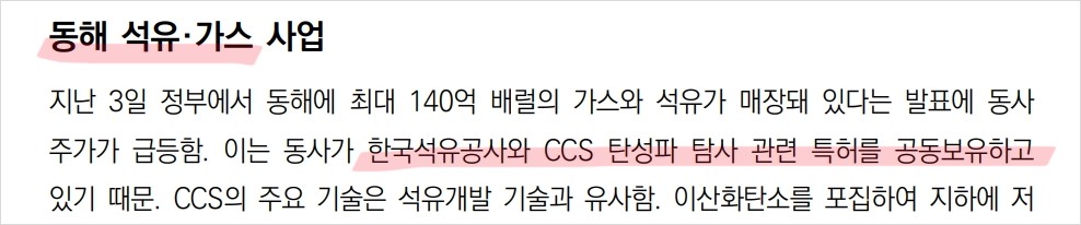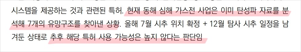 - 동해 가스전 관련 탄성파 탐사 특허를 보유하고 있어 많이 올랐는데, 탄성파 특허 사용 안된대요.. ㅠ