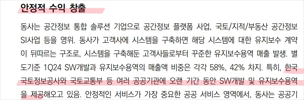 - 공공기관과의 장기 계약을 통해 안정적인 매출을 확보하고 있음.