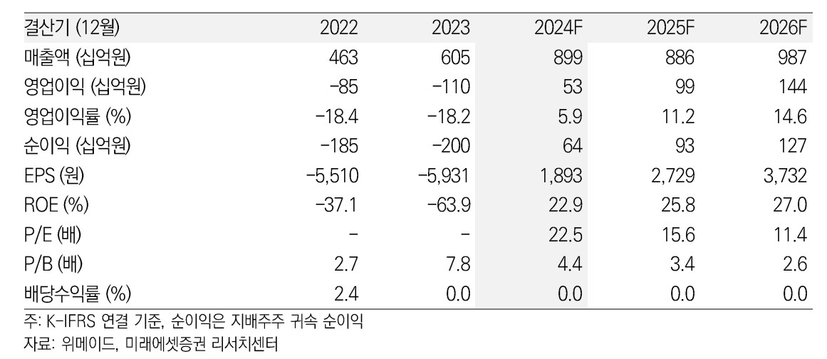 A. 위메이드는 2024년 매출액 2,410억원, 영업이익 480억원을 기록할 것으로 예상됨.