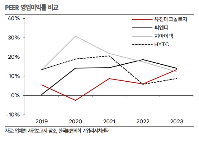 유진테크놀로지의 주가는 현재 2024년 추정 실적 대비 PER 19.2배, PBR 1.2배로 저평가된 상태입니다. 특히 국내 1위 노칭 금형 기업으로서의 안정적인 매출 기반과 신성장동력인 장비 사업 및 리드탭 사업의 성장 가능성을 고려할 때, 앞으로 주가 상승이 기대됩니다. 또한, 2024년 EV 시장의 변동에도 불구하고 신규 사업 매출 증가로 외형 성장이 전망됩니다.