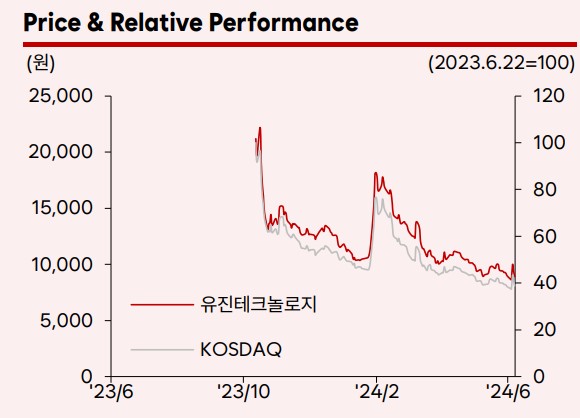 유진테크놀로지의 주가는 현재 2024년 추정 실적 대비 PER 19.2배, PBR 1.2배로 저평가된 상태입니다. 특히 국내 1위 노칭 금형 기업으로서의 안정적인 매출 기반과 신성장동력인 장비 사업 및 리드탭 사업의 성장 가능성을 고려할 때, 앞으로 주가 상승이 기대됩니다. 또한, 2024년 EV 시장의 변동에도 불구하고 신규 사업 매출 증가로 외형 성장이 전망됩니다.