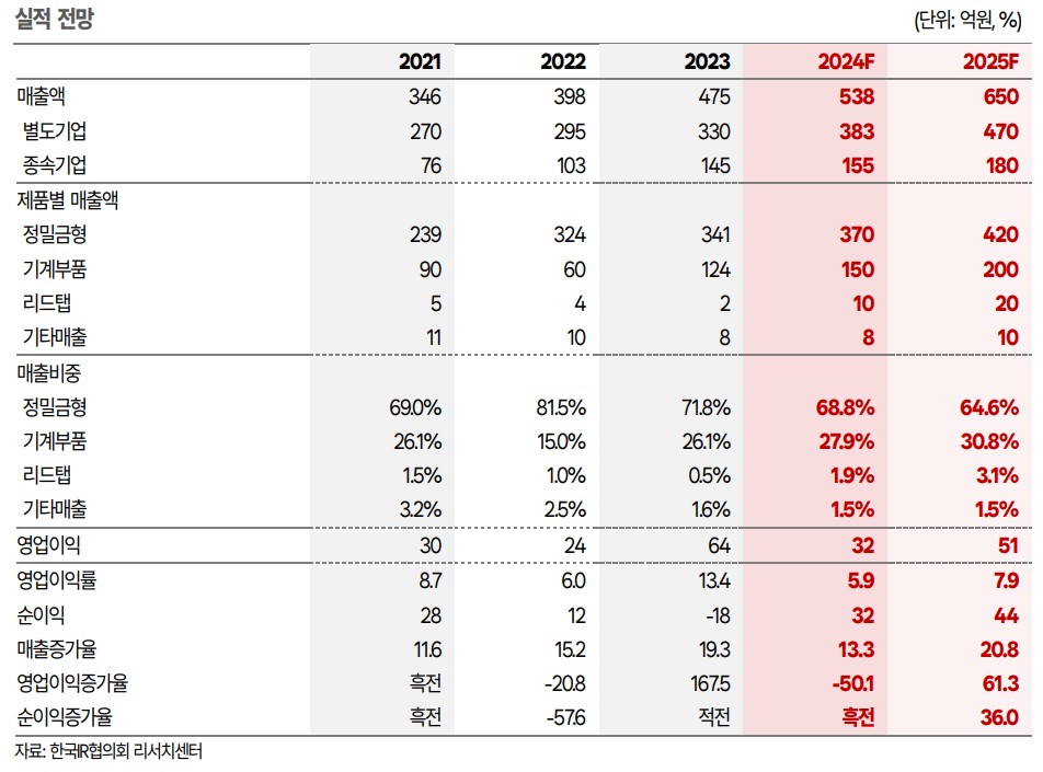 유진테크놀로지는 2010년에 설립된 이후 꾸준한 성장을 이루어왔습니다. 현재 국내 2차전지 노칭 금형 시장에서 1위 자리를 차지하고 있으며, 해외 시장에서도 지속적으로 성장하고 있습니다. 정밀 금형, 기계 부품, 리드탭 등 다양한 제품 라인업을 보유하고 있으며, 이를 통해 안정적인 매출을 기록하고 있습니다. 특히 2023년 매출액은 538억 원, 영업이익은 32억 원으로 전망되며, 이는 전년 대비 큰 폭의 성장을 의미합니다.
