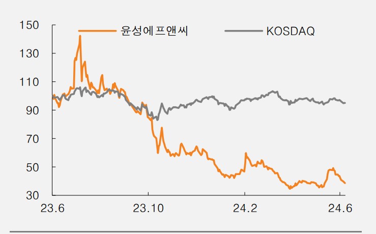 윤성에프앤씨는 매출액과 영업이익이 꾸준히 상승하고 있는 기업임. 매출액은 2021년부터 2024년 1분기까지 꾸준한 증가세를 보이고 있음. 영업이익도 비슷한 추세를 보이며, 안정적인 수익 구조를 유지하고 있음. 부채비율은 200% 이하로 양호한 수준을 유지하고 있으며, 이는 재무 건전성을 보여줌. 아래 표는 윤성에프앤씨의 주요 재무 지표를 정리한 것임.