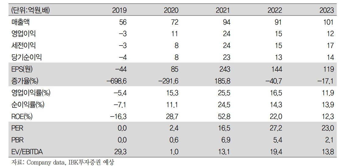 - 24년 1분기 매출액 20.4억원, 영업이익 1.3억원 기록