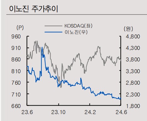 이노진의 목표주가는 설정되지 않았지만, 해외 매출 정상화와 제품 매출 비율 증가를 통해 실적 성장 가능성이 높음. 내년부터 본격적인 매출 성장이 기대되며, 이는 주가 상승으로 이어질 가능성이 큼.