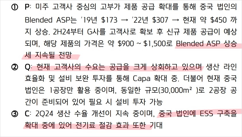 - 2024년 하반기: 국내 Capa 증설, G사향 제품 공급 본격화