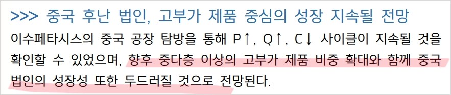 - 중국 공장 탐방: 고부가 제품 중심 성장