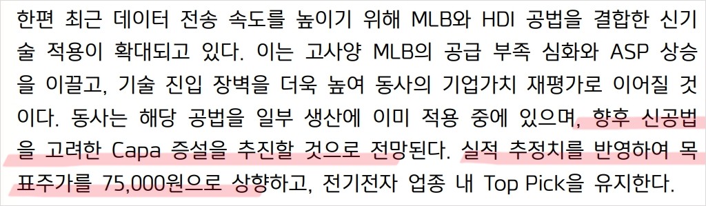 이수페타시스는 최근 중국 공장 탐방을 통해 고부가 제품 중심의 성장이 확대되고 있음. 특히 2024년 하반기부터는 국내 생산 능력(Capa) 증설과 함께 중국 법인의 G사향 제품 공급이 본격화될 예정임. MLB와 HDI 공법을 결합한 신기술 적용이 확대되며 고사양 MLB의 공급 부족 심화와 Blended ASP 상승이 예상됨. 이를 통해 이수페타시스의 성장 가능성이 더욱 높아질 것으로 전망됨.