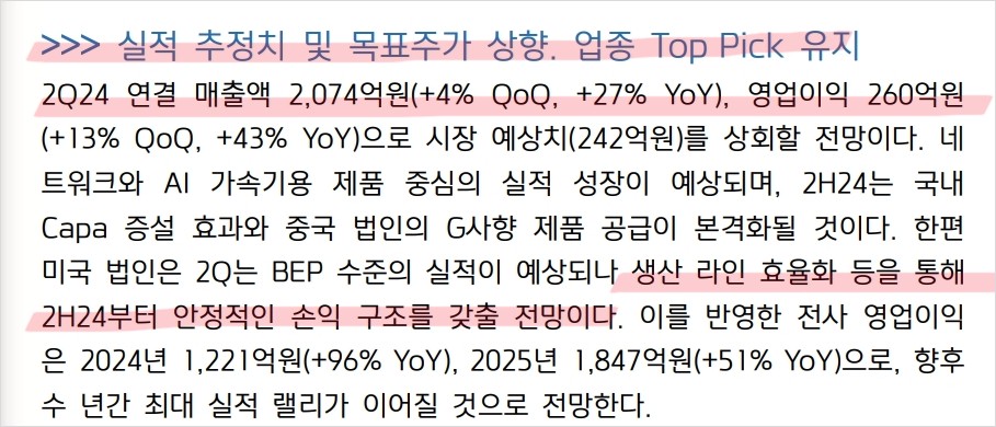 이수페타시스는 최근 중국 공장 탐방을 통해 고부가 제품 중심의 성장을 확인했음. 특히, 2024년 하반기부터 국내 생산 능력(Capa) 증설과 중국 법인의 G사향 제품 공급이 본격화될 것으로 전망됨. MLB와 HDI 공법을 결합한 신기술 적용 확대와 함께 고사양 MLB의 공급 부족이 심화되며 Blended ASP 상승이 이어질 것으로 보임. 목표주가 상향, 업종 Top Pick 유지.
