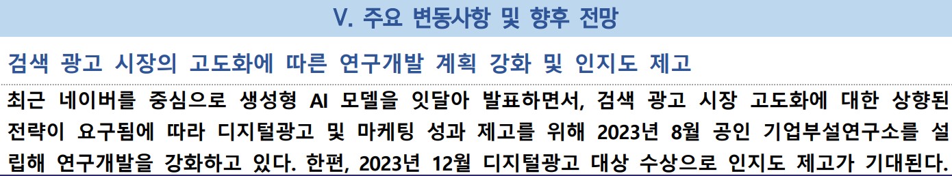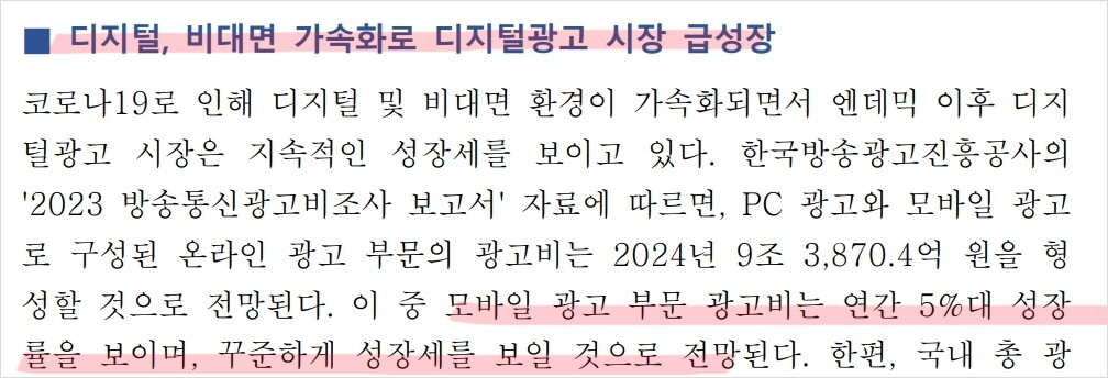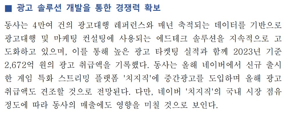 - 기술적 분석: 자체 개발한 광고 솔루션을 통한 시장 점유율 확대