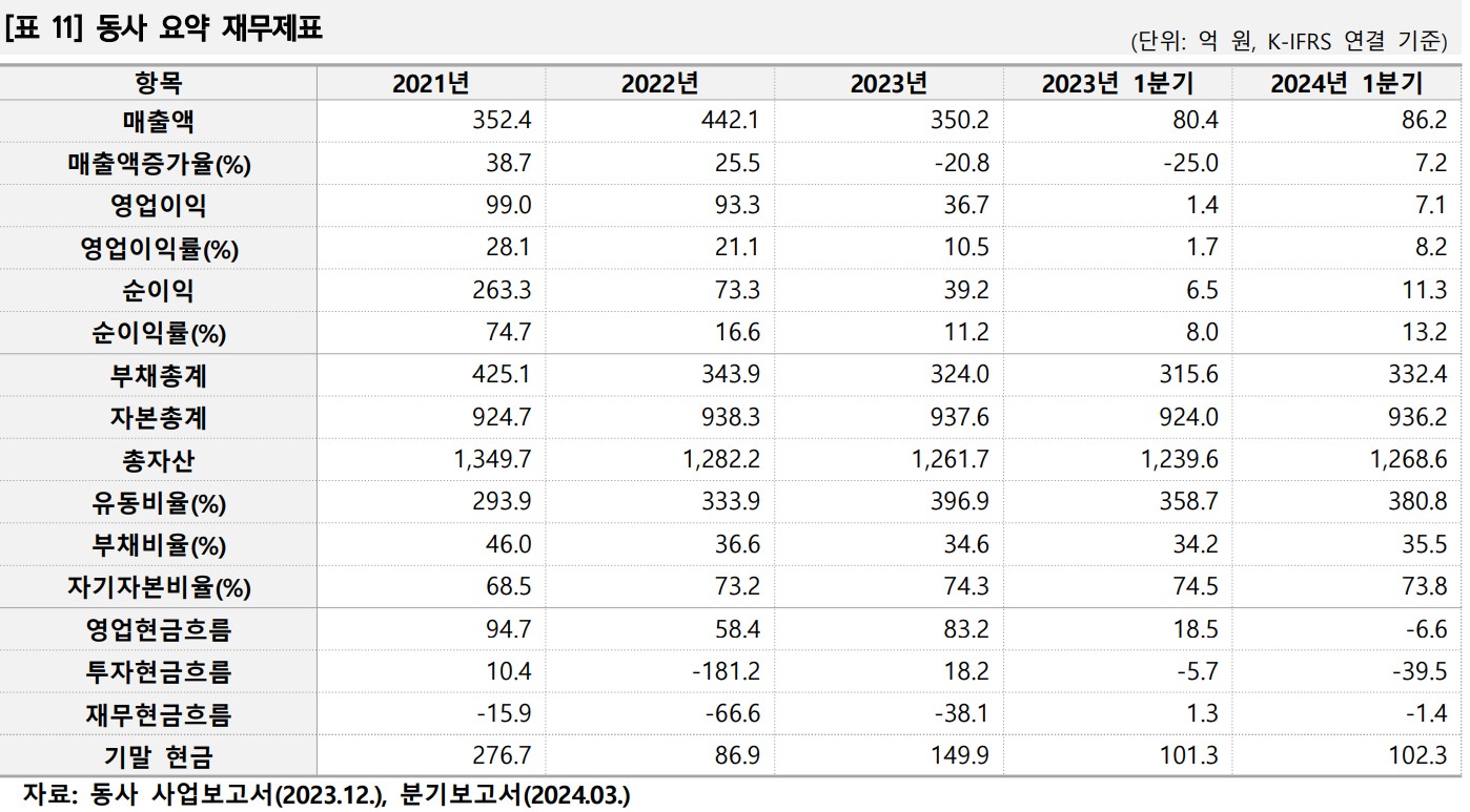 | 단위(원) | 2021년 | 2022년 | 2023년 | 2024년 1분기 |