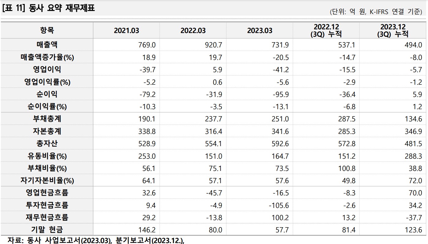 | 매출액 | 769억 | 920억 | 731억 | - |