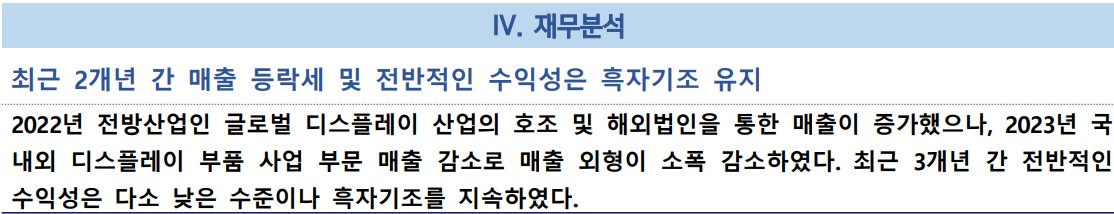 - 주요 사업 부문: 디스플레이 부품 제조, 자동차 부품 제조