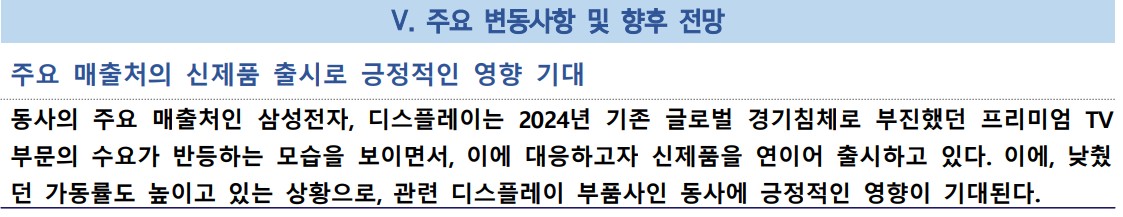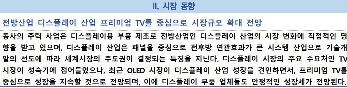 - 미래 주가 전망: 디스플레이 부품 수요 증가로 주가 상승 기대