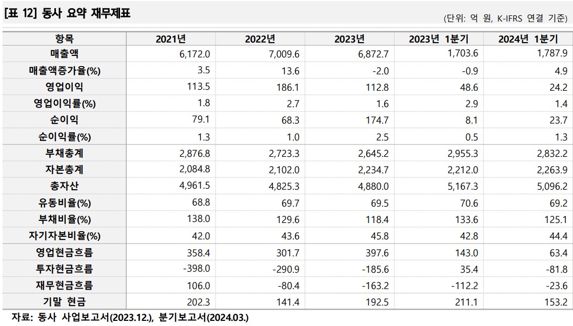 | 매출액 | 6,172억 | 7,009억 | 6,872억 | 1,787억 |