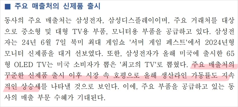 - 주요 매출처: 삼성전자, 삼성디스플레이