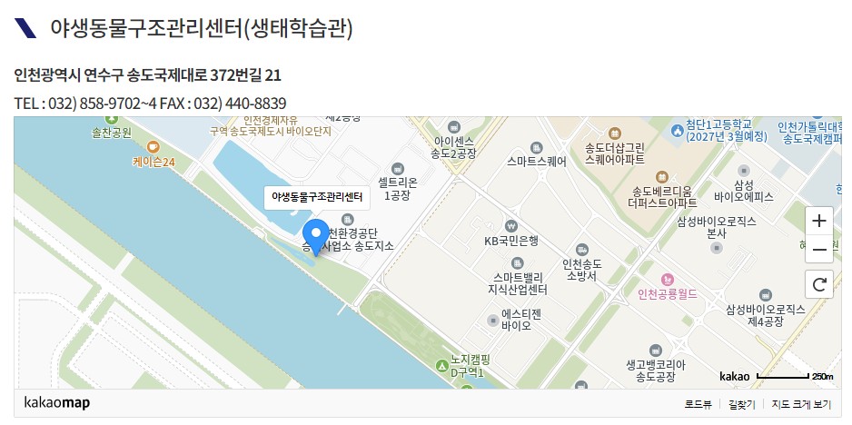 야생동물구조센터는 각 도 별로 있지만 이곳에서 구조신고를 직접 받지는 않습니다. 대부분 각 지자체의 환경보호과나 대표번호로 전화해서 야생동물구조 신고를 하면 되는데요, 인천광역시 야생동물 구조 신고는 인천광역시 각 구청 대표번호로 전화하시면 됩니다.