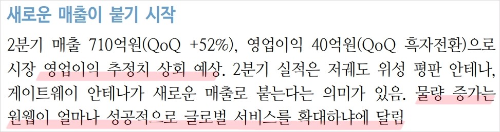 - 게이트웨이 안테나 부문에서도 새로운 성장 동력이 기대됨.