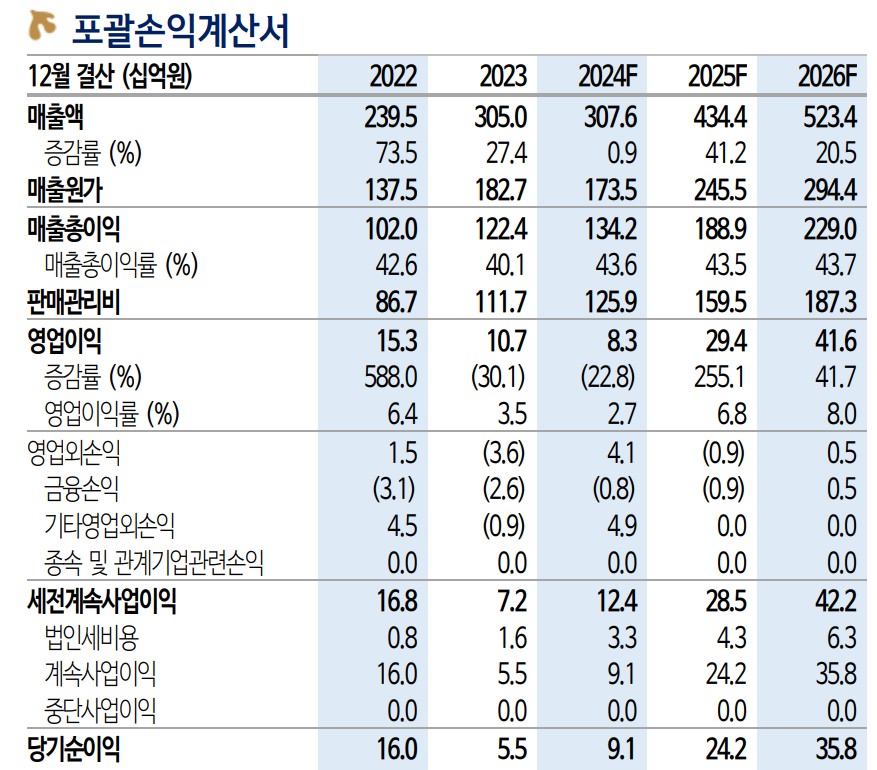 | 매출액 | 239.5 | 305.0 | 307.6 | 434.4 |