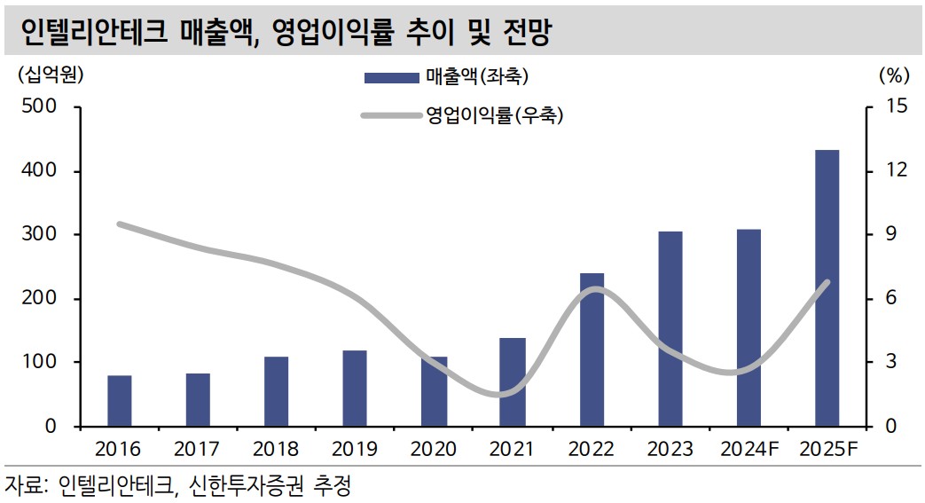 인텔리안테크는 위성통신 안테나 분야에서의 선도적 기술력을 바탕으로 지속적인 성장을 이어가고 있음. 저궤도 위성 통신 시장의 성장과 함께 평판 안테나와 게이트웨이 안테나 분야에서의 확장이 기대됨. 다만, 수익성 개선이 필요한 상황이며, 이에 대한 전략적 접근이 필요함.