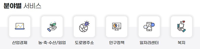 | 각종 인허가 처리 | 노인 복지 지원 | 관광 명소 관리 |