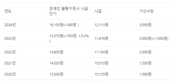 2024년 장애인활동지원사 급여수준